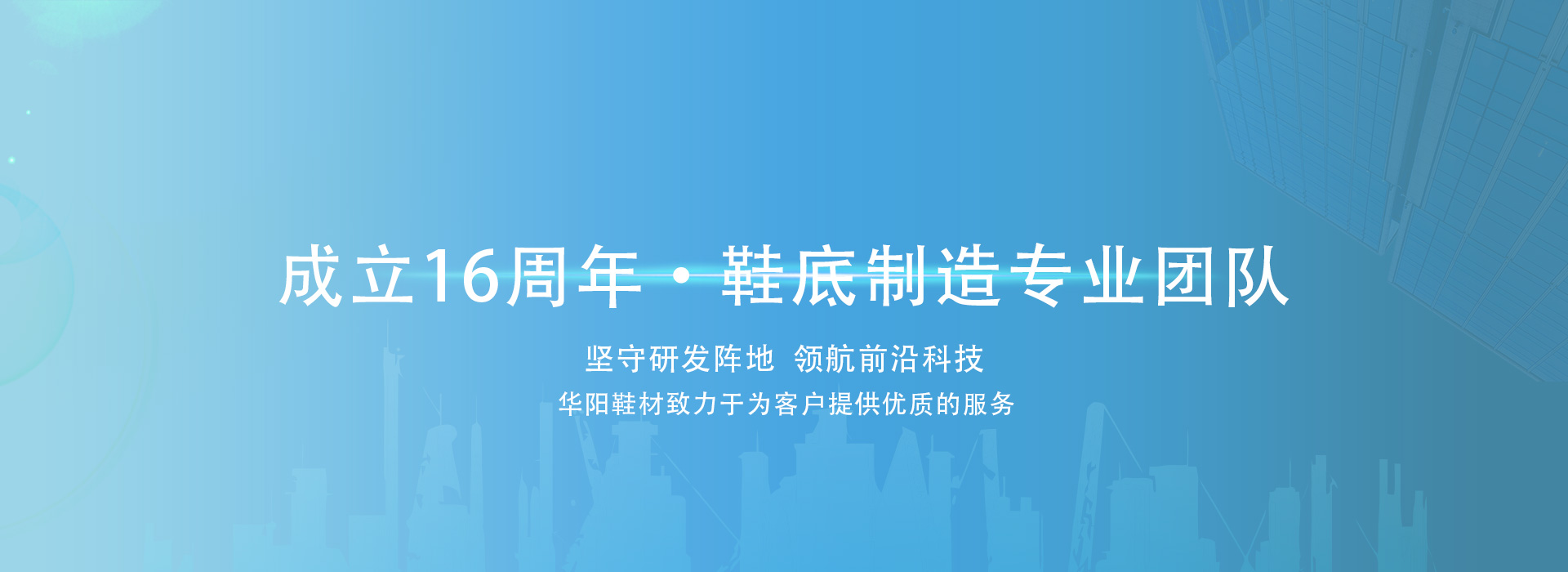 華陽鞋材于2004年成立,傳承晉江傳統(tǒng)工匠精神與現(xiàn)代化工藝技術(shù)完美融合,全面滿足客戶需求,成為國內(nèi)市場上專業(yè)的鞋底制造商之一。多年來,華陽鞋材自主研發(fā)及引進最先進智能生產(chǎn)設(shè)備,致力于生產(chǎn)EVA一次(IP)成型鞋底、EVA二次(MD)成型鞋底、TPR鞋底、RB(橡膠)鞋底,TPU鞋底及配件及底材組合。